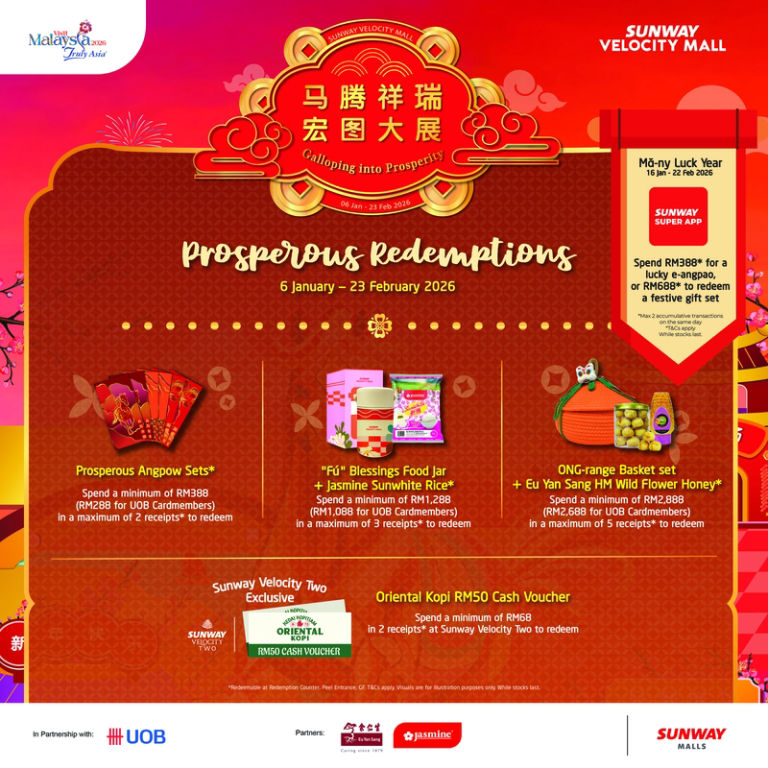 – Sunway Velocity Mall reserves the right to amend the terms & conditions without prior notice and cancel or postpone the event due to unforeseen circumstances or insufficient registrations. If so, participants will be notified accordingly.