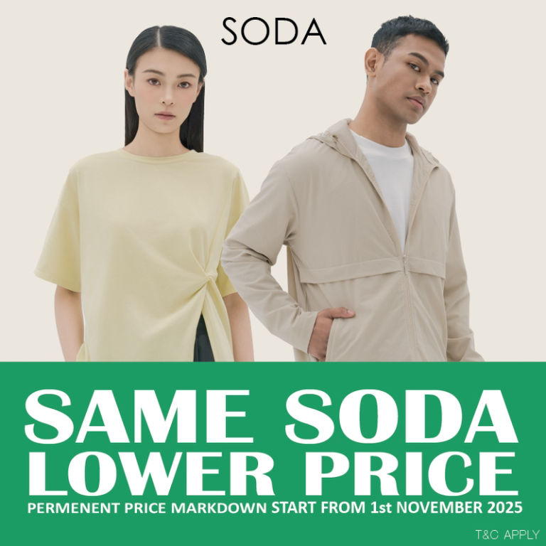 Quality fashion, wallet-friendly prices. Same style standards, better value at Soda 1-26, Sunway Velocity Mall.